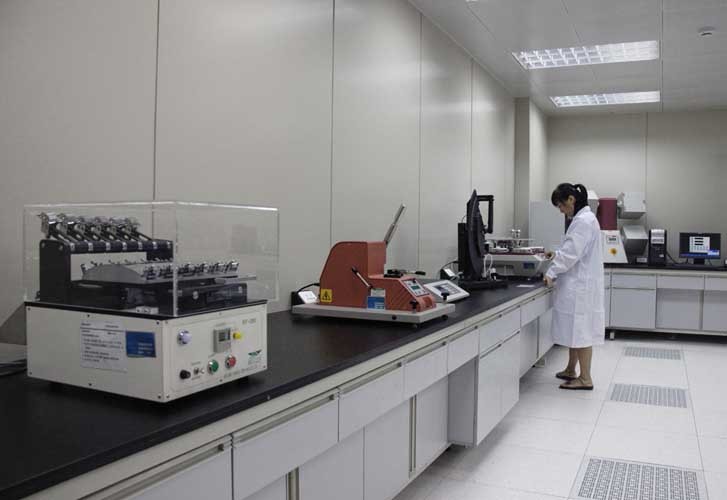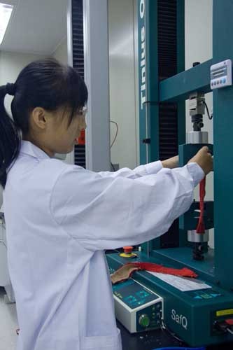 技術中心設置了綜合實驗室、化學實驗室等檢測實驗室,可進行包括甲醛含量、可分解芳香胺、可萃取重金屬、織物阻燃性能、織物外觀測試、線圈強力及各種牢度等80多個項目。2009年,技術中心實驗室通過了國際知名企業—迪卡儂公司的國際實驗室認證,2010年通過了國家實驗室認證審核。