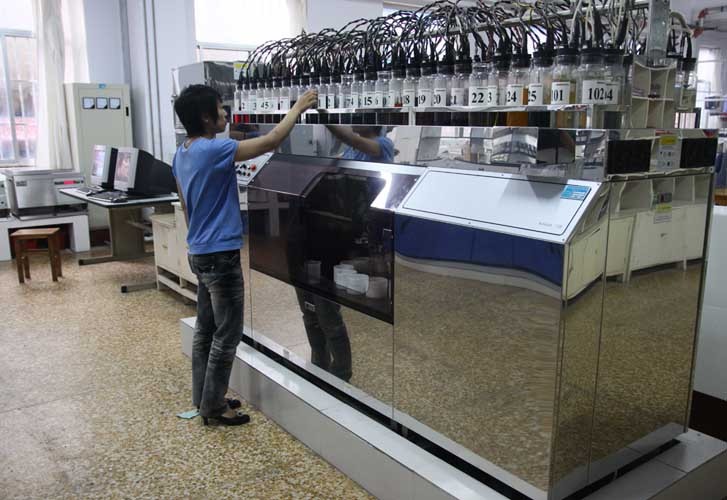 技術中心建筑面積8000多平方米,擁有檢測試驗儀器設備300多臺套,配置了Datacolor電腦測配色系統、自動配料滴定系統、美國安捷倫色相氣相質譜儀等國際先進的儀器設備,同時配套國內同行業最完備的中試基地及檢測中心,擁有檢測ISO歐標、AATCC美標、JIS日標及國標等40多個項目的檢測能力,檢測結果得到國際客戶的認可,為新產品、新技術的研發提供了堅實保障。2010年,該技術中心以全國紡織行業第一的位次被認定為國家企業技術中心。