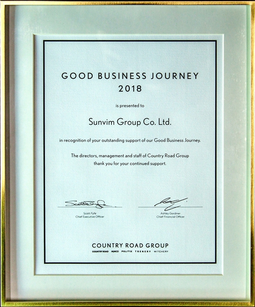 2018年11月20日,COUNTRY ROAD全球供應(yīng)商大會在澳大利亞墨爾本舉辦。孚日集團(tuán)家紡二公司總經(jīng)理王啟軍,從COUNTRY ROAD 總裁Scott先生手中接過“全球最佳商業(yè)伙伴獎”,這是孚日首次獲得澳洲市場的高等級大獎。