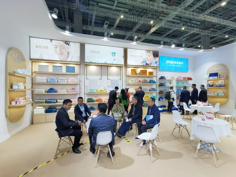 本次展會孚日家紡參展產品主要以金護紡系列、星巢系列、國潮系列產品為主,結合新中式美學家居風格,充分展示孚日集團技術創新和科研優勢在家居紡織品上的應用,孚日家紡通過不斷創造高附加值和高附加功能的產品,滿足消費者日益提高的審美需求及功能需求。潔玉毛巾參展產品主要以金護紡系列、防螨抗菌系列,抗陰干菌系列等功能性產品為主,針對消費者產品使用場景中遇到的問題,提供針對性的解決方案。潔玉毛巾全系產品嚴格執行GB31701-2015嬰幼兒用品安全標準,用嬰幼兒標準打造全民毛巾,為消費者提供更高品質的毛巾。